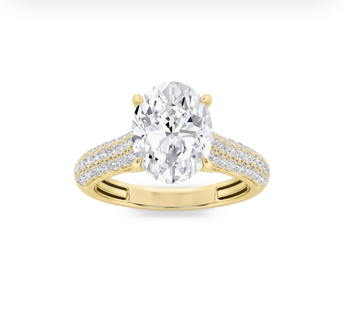 Crafted in premium 14K solid yellow gold, this ring features a stunning 1.02ct oval center diamond surrounded by precision-set pavé diamonds along the halo and band for nonstop sparkle under every lighting environment.
